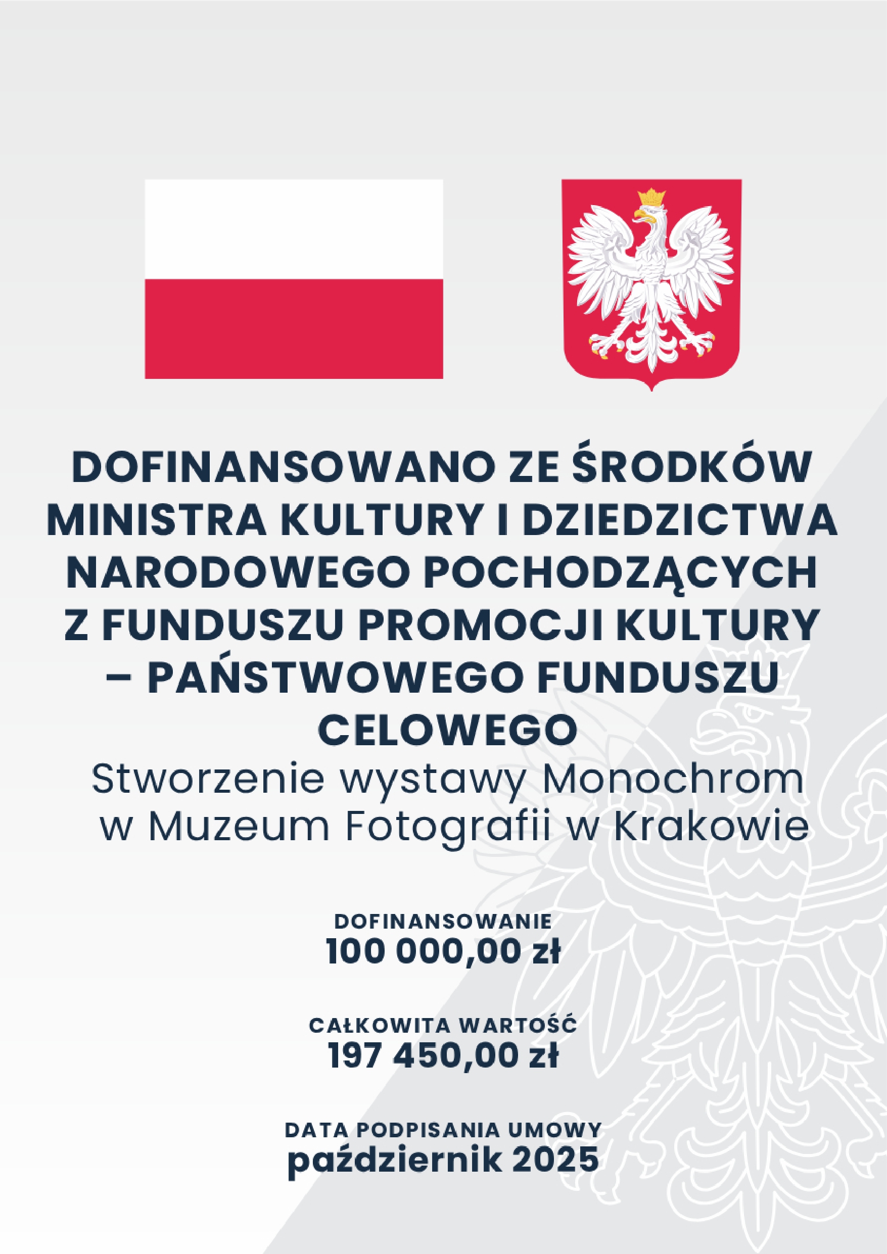 Dofinansowano ze środków Ministra Kultury i Dziedzictwa Narodowego pochodzących z Funduszu Promocji Kultury – państwowego funduszu celowego oraz ze środków Gminy Miejskiej Kraków